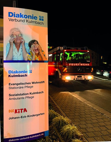 Übung der Freiwilligen Feuerwehr Kulmbach e.V. mit den Mitarbeitenden der Diakonie Kulmbach.